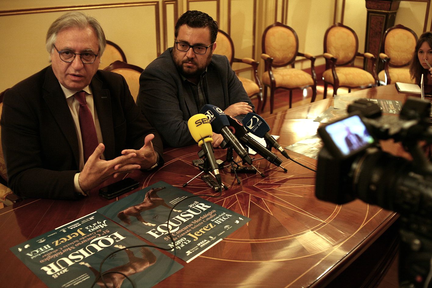El vicepresidente de Ifeca, Jaime Armario, y el teniente de alcaldesa de Dinamización Cultural, Francisco Camas, han presentado esta mañana la 51ª edición del Concurso Morfológico de Ganado Selecto Caballar, Equisur 2018.