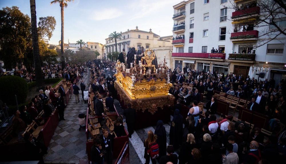 Junto a la Hermandad de la Redención ha dejado momentos muy especiales, como el vivido a inicios de la calle Porvera, en la puerta de la iglesia de la Victoria, saludando a Nuestra Madre y Señora de la Soledad.