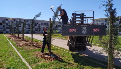 Este programa integral de infraestructuras se inició en noviembre pasado. Tras haberse iniciado en una primera fase el refuerzo de la plantación de arbolado con 120 cipreses y de 30 palmeras y el pintado de la capilla, así como la mejora de los jardines interiores del camposanto, las labores de esta segunda fase se han centrado en el adecentamiento de las estructuras de los bloques, en la colocación de más bancos y en la instalación de más papeleras y contenedores.