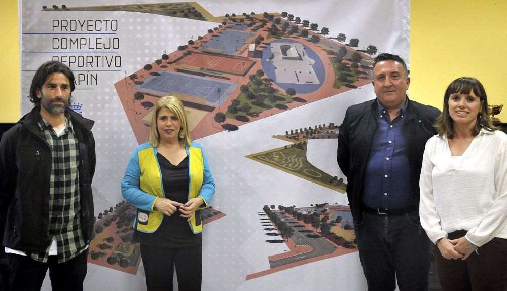 La alcaldesa, Mamen Sánchez, junto a la teniente de alcaldesa de Deporte, Laura Álvarez, el autor del proyecto, Daniel Yábar, y el representante de la empresa constructora, Manuel Alba, ha presentado este martes el proyecto denominado Centro Skate Chapín, consistente en la construcción de un skate park en el solar del Complejo Deportivo Chapín junto al Palacio de Deportes, con acceso desde la avenida Lola Flores.