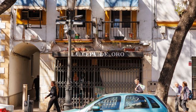 Hasta hace unos años fue uno de los grandes referentes de la restauración en el centro de Jerez. La Cepa de Oro, inaugurada en 1942 de la mano de José Benicio e Isabel Román, desaparecerá completamente del paisaje de la calle Porvera. Medio siglo después de su fundación, en 1992, fue Felipe Benicio el que hizo que el mítico negocio hostelero de la céntrica calle viviera unos años de esplendor, pero con su fallecimiento solo quedó el emblemático rótulo que tanto tiempo iluminó este bello paseo de jacarandas en el centro mismo de Jerez.