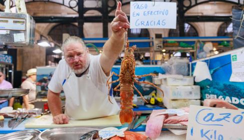 Lo que exponen en los mostradores se relaciona con los productos que entran en las lonjas o que sirven los mayoristas. Desde hace un par de días, hay uno que llama poderosamente la atención y que ha atraído a numeroso púbico: la langosta, ese crustáceo de lujo de gran sabor y precios prohibitivos.
