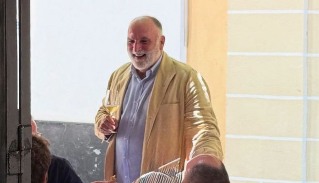 En las imágenes compartidas por el propio restaurante, se puede ver a José Andrés con una copa de vino en la mano, relajado y conversando con los suyos, en un ambiente distendido que demuestra la cercanía que mantiene con este rincón gaditano.