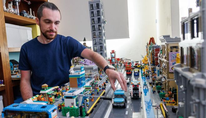 En una vivienda familiar de Jerez, cerca de San Joaquín, una habitación se ha transformado con el paso de los años en una ciudad en miniatura construida con piezas de Lego. Su creador, David Sarmiento, ha desarrollado este proyecto personal a lo largo del tiempo hasta ocupar varios metros cuadrados y reunir miles de piezas y centenares de figuras, en un proceso que combina afición, paciencia y evolución constante.