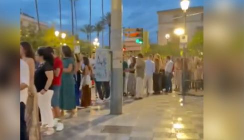 Una kilométrica se ha formado alrededor en Cristina, alrededor de la iglesia de Santo Domingo, de personas que han acudido este viernes a este evento.