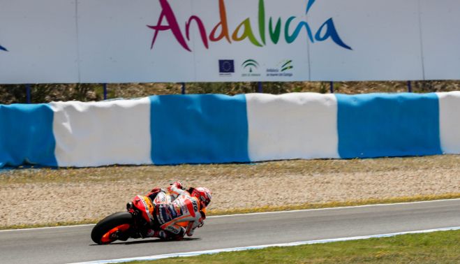 Las gradas del trazado jerezano comenzaron a calentarse cuando los pilotos de la categoría reina de MotoGP salieron a pista para los primeros libres. Esta primera jornada de viernes ha estado muy reñida, con un Márquez competitivo y rápido que conseguía mantenerse en la primera posición de la parrilla en la primera tanda y continuaba siendo el más rápido hasta minutos antes de finalizar la segunda tanda libre donde era desbancado por los pilotos de Ducati.
