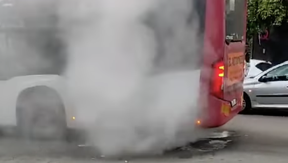 El autobús empezó a echar humo por la parte trasera generando preocupación entre los pasajeros y viandantes. Sin embargo, Comujesa, en un informe técnico, constata que no se trata de un incendio, sino de una avería.