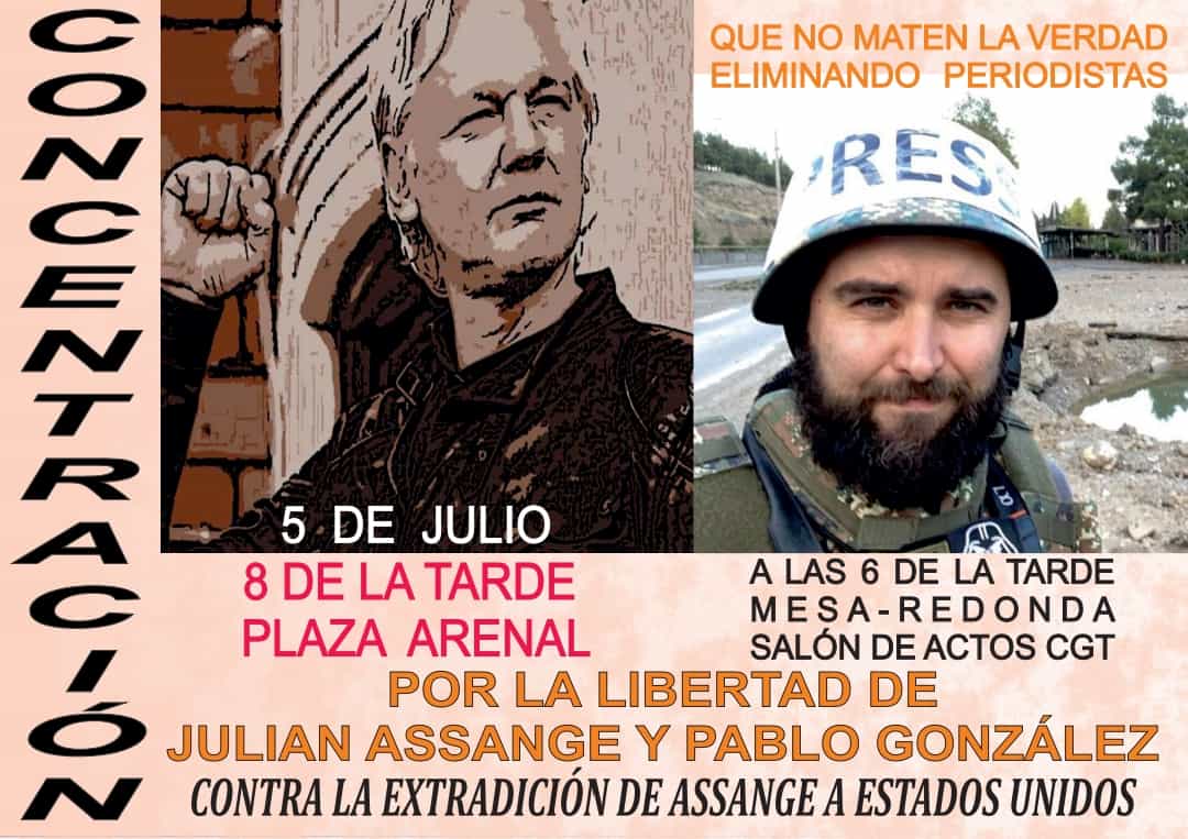 La plataforma Paremos las guerras ha convocado una concentración para el miércoles 5 de julio en Jerez, con la que pide que se deje en libertad a los periodistas Julian Assange y el español Pablo González. La plataforma dice que estos casos "demuestran que los derechos humanos en el Occidente son una farsa cuando te metes con los poderosos".