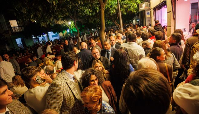 Pero luego siguió recorriendo las calles como un jerezano más, lejos ya de la presencia institucional y mediática de las visitas anteriores. En una de esas, de hecho, el propio consejero se vio en medio de una bulla por la calle, una aglomeración que provocó cierto embotellamiento.