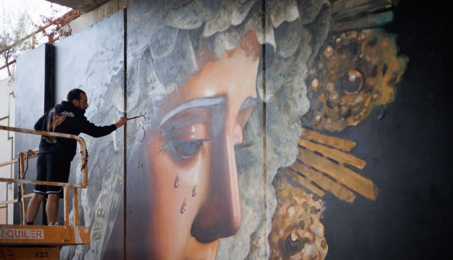 Los grafiteros de Jerez Cosa.V, Pol Tattoo y Decimart, son los autores de un artístico mural que han pintado en el interior del puente de la calle Arcos. En vez de basarse en motivos abstractos o de otra índole, reproduce el rostro de la Virgen de la Concepción de la Hermandad de las Viñas, cuya sede se localiza muy cerca de este lugar.