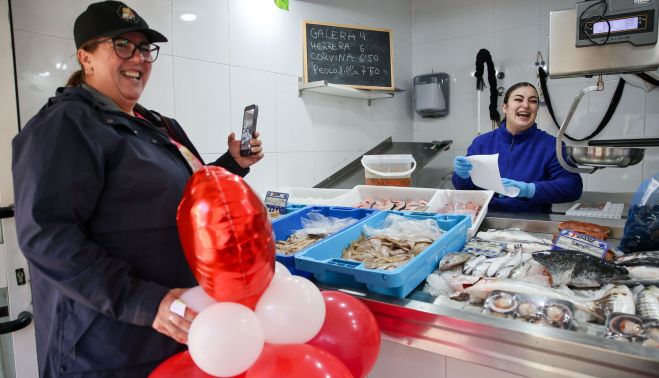 “Hoy Creamos sonrisas te viene buscando”, le ha dicho a la portuense, rodeada de corvinas y pescadillas. Y le ha entregado una nota y una cesta que le han emocionado. En su cara, se ha dibujado una gran sonrisa. Objetivo cumplido.