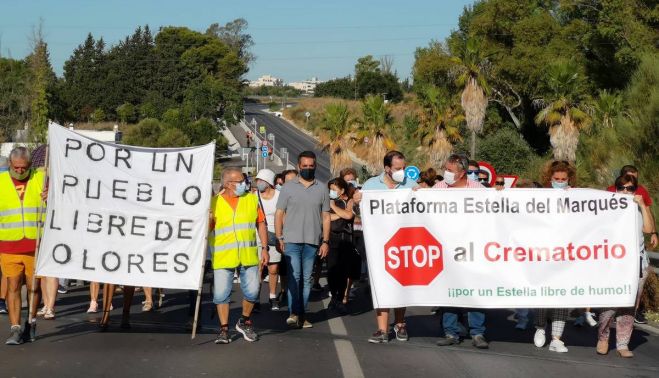 Según Díaz, la tramitación del proyecto del crematorio se inició en 2020 —de hecho, el gobierno anterior del PSOE lo declaró de utilidad pública—, quedando pendiente de informes preceptivos de la Junta de Andalucía, ya que los terrenos propuestos no eran urbanizables y eran de titularidad privada. En marzo de 2023, el anterior gobierno socialista paralizó la tramitación debido a un informe desfavorable de dominio público hidráulico emitido por la Junta, que señalaba que los terrenos se encontraban en las inmediaciones del arroyo del Salado, una zona inundable. Esta decisión respondió a las demandas de los vecinos de Estella del Marqués.