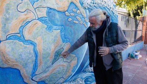 Mientras el mural avanza, Mejías observa cómo ha ido cambiando la percepción vecinal. Al principio, el muro blanco fue sustituido por manchas de color que generaron desconcierto. "En un día manchado de color no se veía nada, y la gente, decía que vaya mamarracho, con lo bonito que estaba de blanco", recuerda. Con el progreso del trabajo, la acogida mejoró e incluso surgieron anécdotas inesperadas, como la de unas ovejas que se acercaron a mordisquear la hierba representada en uno de los relieves.