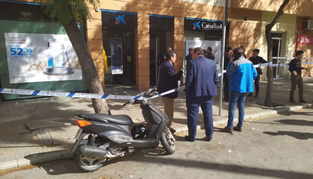 Daban las 14:05 cuando dos italianos de 31 y 51 años se enfundaron en sendos pasamontañas, se bajaron de una moto de 125 cc robada en Sanlúcar la pasada semana y se metieron en sucursal de La Caixa de Puertas del Sur. Antes, habían rondado otra del Banco Santander, a unos 30 o 40 metros de distancia, pero por alguna razón no lo vieron claro. Dentro, trabajadores de La Caixa, una pareja y dos mujeres, una de ellas, empleada de un establecimiento cercano, que fueron tomados al instante como rehenes.