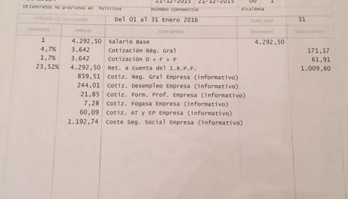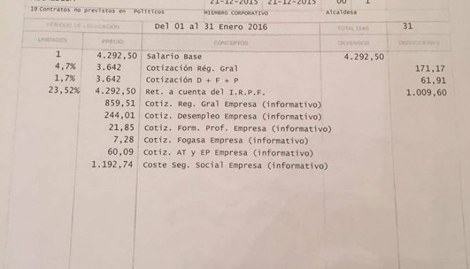 La publicación de la nómina, en respuesta a “otra publicada hoy en un medio que decía que gano bastante más”, ha suscitado todo tipo de reacciones en Facebook. “Yo no me meto en un Ayuntamiento tan complicado en el que cualquier mala gestión te destina a Puerto 3, insultos, trabajar 24 horas al día, problemas, problemas y más problemas por 3000 euros”, le dice un jerezano llamado Francisco.