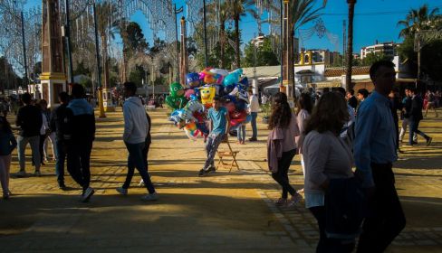 El día —creemos que es jueves, aunque uno, vuelve a repetir, ya tiene dudas de todo— vuelve a amanecer fresquito y con nubes, pero abre más tarde para dejar un bonito día de mayo. El albero del Real aún está virgen de boñigas de caballo cuando entran los primeros enganches. A esta hora en la Feria hay poco más que grupetes de jubilados y jubiladas, todas ellas perfectamente vestidas de flamenca. Los jardines que dan al Bosque, botellódromo oficial durante la fiesta, aún descansan tranquilos. La marabunta, cargada con bolsas con lotes de fino, ron, ginebra o whisky tardará un poco en pisar el césped. Los primeros guiris del día —cara sonrosada, gorra, camiseta, bermudas, zapatos cómodos (ellos sí que saben)— se aposentan en la rotonda del Paseo de las palmeras para tomar las mejores fotos con cámaras réflex de inmenso objetivos que luego enseñarán a sus amigos o colgarán en Facebook, mientras comentan la bendita locura que organizamos en mayo.