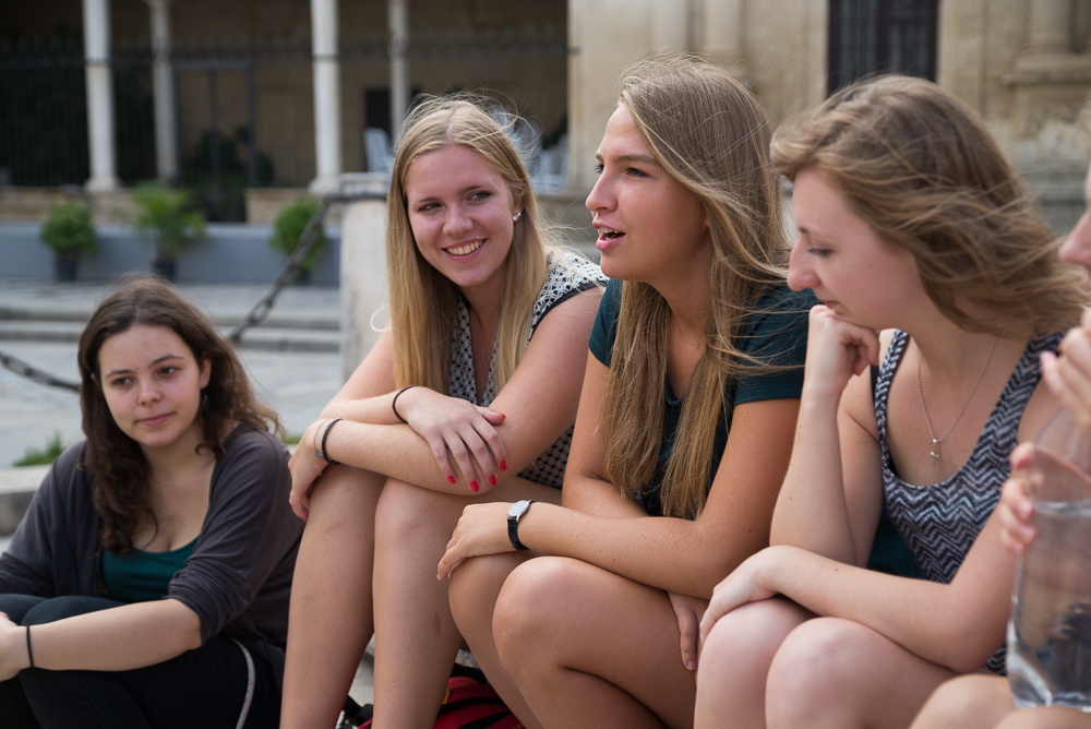 Katy tiene 22 años, viene desde Inglaterra y en un principio no se mudó para aprender español. Su objetivo era alejarse de su país. "Finalicé mis estudios y estaba harta de Inglaterra. No soportaba el tiempo de allí, entonces decidí irme a un sitio soleado, es por eso que hoy estoy aquí", explica Katy. Es la más veterana de todas, lleva cerca de tres años en Jerez y dice que no tiene pensado marcharse. Sigue descansando, respirando un aire distinto al británico. Es más, cuenta que en septiembre regresó a su país, no porque extrañase aquello, sino porque le hacía falta un nuevo visado. Como Katy, Arantxa hace dos meses que dejó Venezuela por el mismo motivo. Tiene 21 años y está cursando la carrera de Lenguas Modernas. "Para nadie es un secreto cómo está mi país. Aquello es una dictadura. Vine para tomar un break (descanso), para ver algo nuevo y descansar del panorama porque allí hay bastante estrés", comparte la joven venezolana.