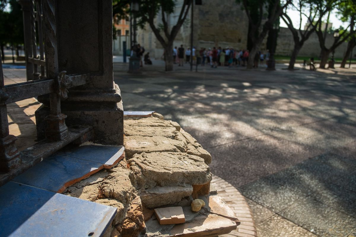 "Nos ha gustado mucho lo que hemos visto pero la ciudad parece que está abandonada", expone uno de los turistas, que no comprende cómo al lado de una emblemática bodega como la de Tío Pepe el estado del firme y del mobiliario público está tan deteriorado. Con objeto de hacer una foto, se acercan al pequeño templete de la Alameda Vieja, a la vera de la cuesta de la Alcubilla. No pueden. Su estado es lamentable. De vez en cuando algún que otro vándalo decide echar un poquito más de leña al fuego. El historial de destrozos este mini atractivo turístico, que ha dejado de ser atractivo y turístico, es largo.