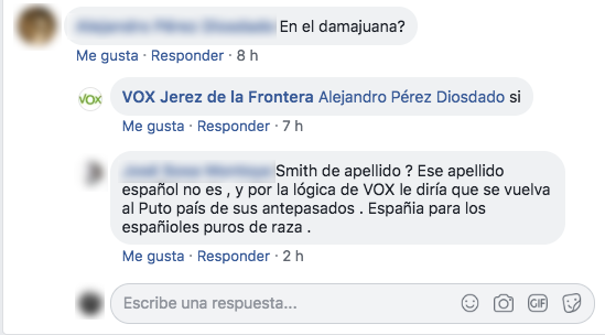 Extracto del Facebook de VoxSin embargo, pasado el mediodía y tras hacerse viral la información publicada por lavozdelsur.es, Damajuana a través de la red social Facebook negaba la celebración de este evento el próximo domingo en Jerez, asegurando que pese a estar en contactos con la dirección de Vox "todo lo difundido es falso" y que Damajuana "no albergará ningún acto político el próximo domingo".