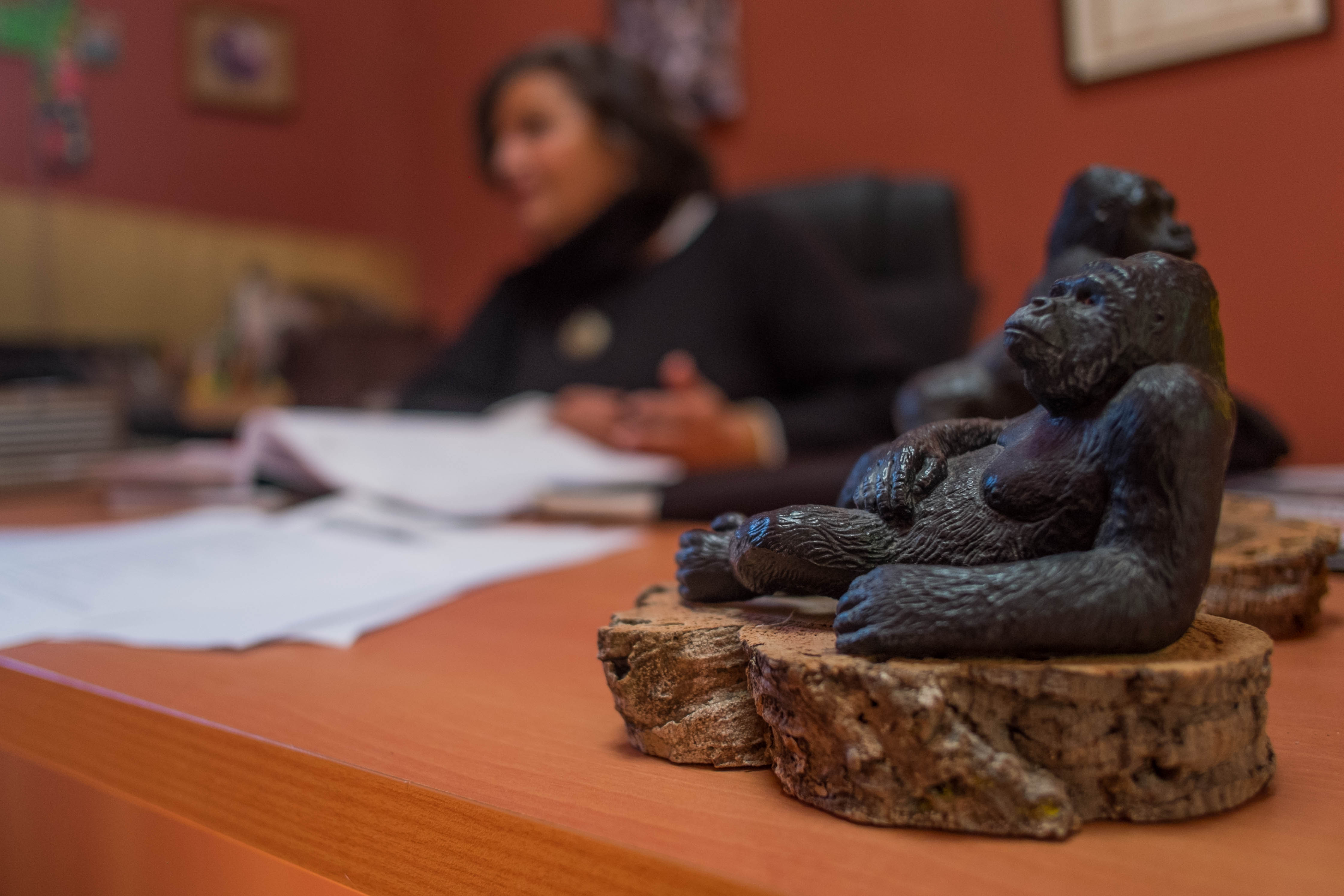 Una figura de un gorila, en el despacho de Yeye Mateos.