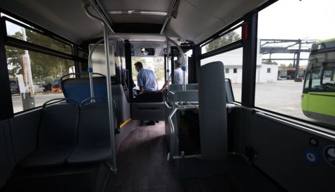 En las cocheras de Comujesa, la empresa pública que gestiona el transporte urbano, el primero de los vehículos llegados a Jerez está casi a punto para poder circular. Se encuentra rotulado, a falta de matrícula.