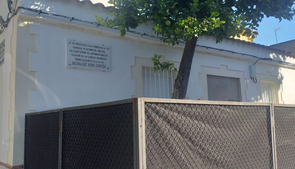 En la exposición de hechos, se recoge que esta vivienda ha sido recientemente restaurada y que en la placa reza: "Se edificó esta casa, primera de la barriada, en octubre del año 1936, en pleno periodo del movimiento militar salvador de las esencisas nacionales, siendo alcalde el Ilustrísimo Sr. Don Bernabé Rico Cortés". "En el proceso de restauración de la mencionada casa se debió eliminar de la fachada el mencionado símbolo franquista", expresan los memorialistas en la denuncia, donde se habla de vulneración "flagrante" del artículo 35 de la Ley, donde se hace referencia a los símbolos y elementos contrarios a la memoria democrática.