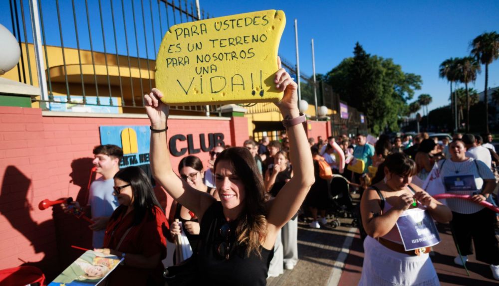 "Esto no tiene ánimo de lucro, aquí hay ocho socios que trabajan en las instalaciones, y la gente hace vida aquí, convivimos con cumpleaños, deporte base, vienen de asociaciones como Upacesur o salud mental... hasta colectas de sangre se hacen, y ahora esto se va a perder", lamenta el presidente de la entidad entre bocinazos y gritos contra el gobierno local.