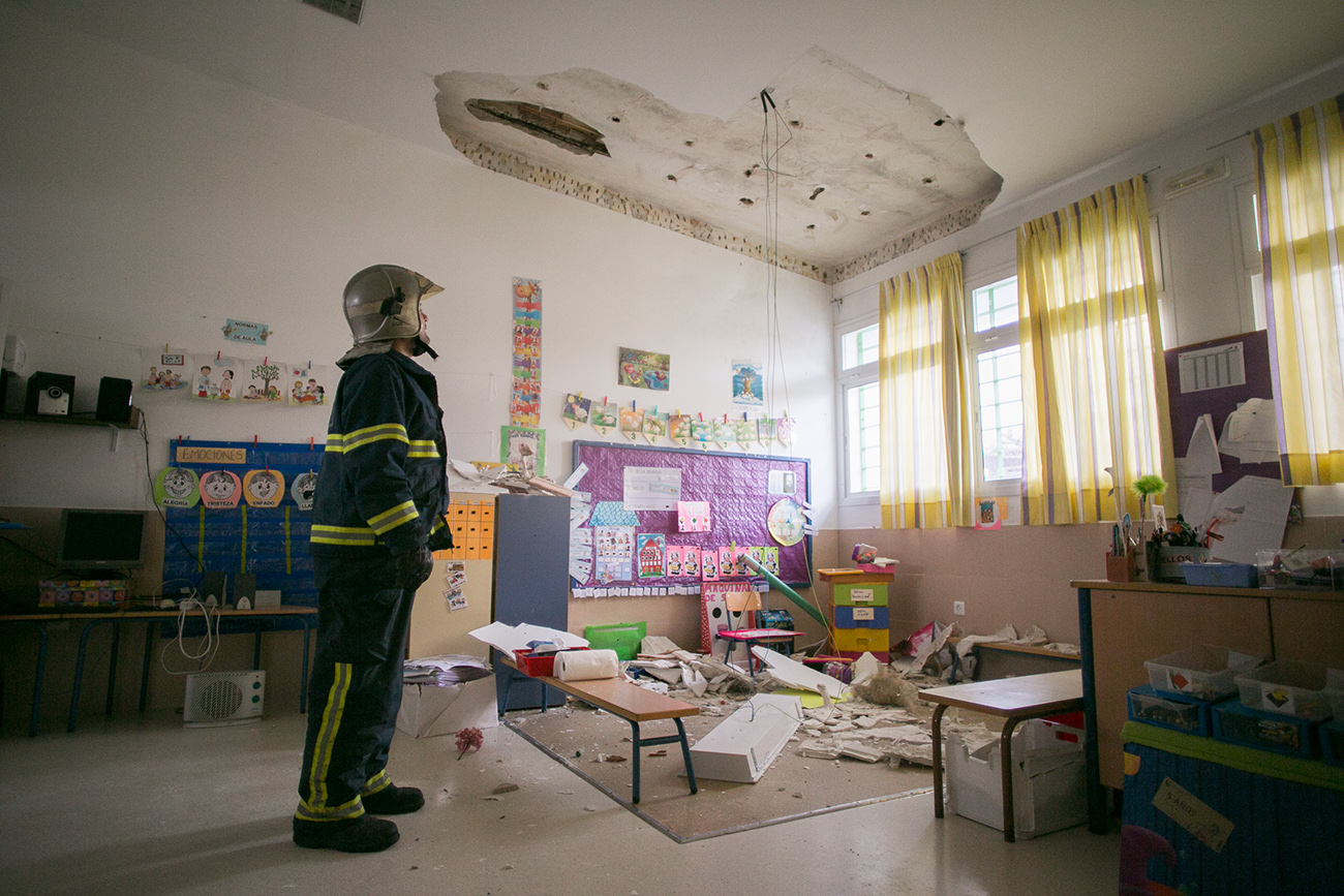 El ajetreo en las inmediaciones del centro es mayúsculo. Los niños juegan en el parque exterior, las madres esperan ansiosas noticias y los técnicos de Urbanismo desplazados hasta el colegio dan una premisa muy clara: hay que desalojar el centro. Los técnicos decretan esta medida preventiva en espera de que este martes se realicen catas en la zona para comprobar si el problema es puntual o afecta a todo el edificio. “Tiene el mismo sistema constructivo que La Constancia o La Plata, y la misma antigüedad, por lo que los problemas están dando la cara ahora”, señalan trabajadores municipales a lavozdelsur.es, quienes confirman que será el martes cuando vean “hasta dónde llega la enfermedad”.