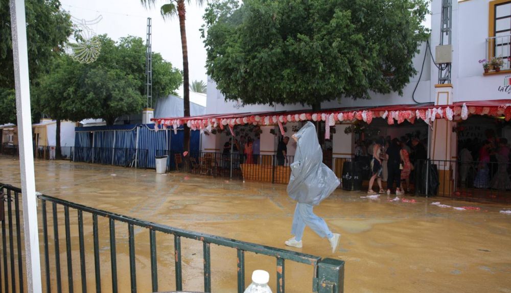 En la Feria, ha habido momentos de tensión en aquellas casetas que estaban más llenas. Por suerte, visto lo visto, han sido las menos, porque no estaba siendo un día de tanta afluencia y quien lo ha deseado ha podido guarecerse dentro de las casetas.