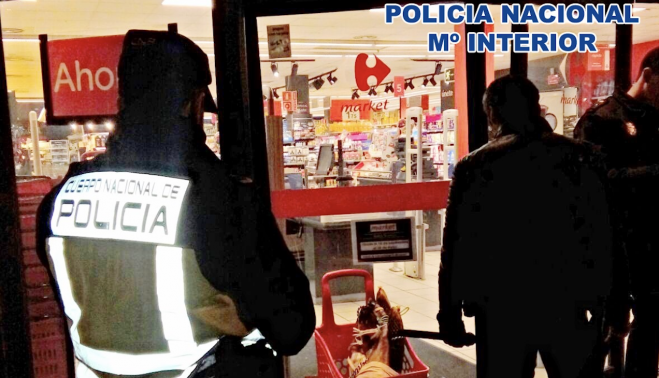 Hasta el lugar se desplazaron varios indicativos policiales, cuyos agentes comprobaron que los accesos al supermercado se encontraban forzados y las láminas de cristal fracturadas, observando un boquete por donde los autores podrían haber accedido al local. Cerca de la salida se encontraban varios artículos de alimentación, incluyendo cuatro patas de jamón, dispuestas para ser extraídas de forma inmediata. Por todo ello los policías valoraron que existía una alta posibilidad que el autor o autores todavía se encontraran en el interior.