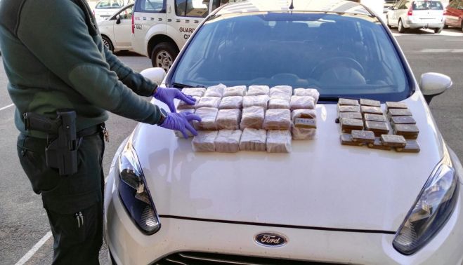Los guardias civiles procedieron a la inspección minuciosa del vehículo, donde encontraron dos compartimentos conteniendo un total de 13,160 kilogramos de hachís, por lo que los agentes procedieron a su inmediata detención como autor de un delito de tráfico de drogas, informándole de los derechos que les asistían según el artículo 520 de la ley de Enjuiciamiento Criminal.
