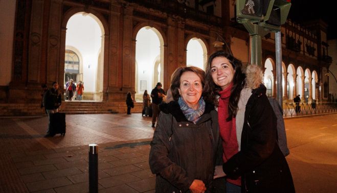 Muchos trabajadores jerezanos en el exilio preparan sus vacaciones para este reencuentro. Maribel y Carmen estaban emocionadas y riendo a la llegada. La típica imagen de la plaza de Estación de Jerez: un coche medio aparcado, con luces de emergencia, y las prisas por meterse en él tras dejar caer la maleta en el maletero.