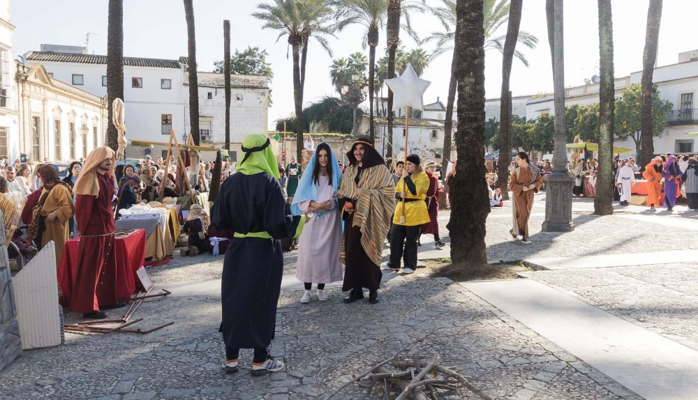 El décimo Belén viviente, organizado por el colegio San Juan Bosco, se ha celebrado desde mediodía, con numerosas personas caracterizadas y toda una escenografía que ha recreado los momentos previos al nacimiento del Niño Dios. En la plaza del Mercado, centro medieval de Jerez, se han situado los figurantes y los diferentes escenarios que han atraído a numeroso público.