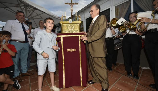 Entre los sones de la banda, los pequeños se divirtieron emulando una procesión. Pero desde luego el momentazo fue cuando Salvi vio que los componentes de la agrupación comenzaron a tocar y apareció el paso. Unos instantes que seguro que quedarán por siempre en su memoria.