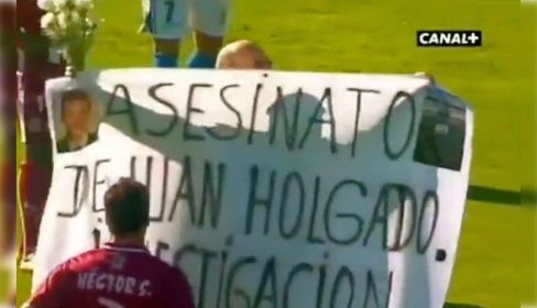 Entre las numerosas iniciativas que puso en marcha para pedir justicia para su hijo Juan –que jugó en la cantera del cuadro xerecista–, asesinado en la gasolinera de Martín Ferrador el 22 de noviembre de 1995, Paco Holgado llegó a interrumpir un partido del conjunto azulino. Fue un 11 de enero del año 2009 cuando en el minuto 26 de un Xerez-Tenerife se lanzó al terreno de juego con una pancarta en la que se podía leer: "Justicia para Juan Holgado. Investigación. No al archivo". De esta manera, quiso reivindicar que no se cerrara el caso del asesinato de su hijo.