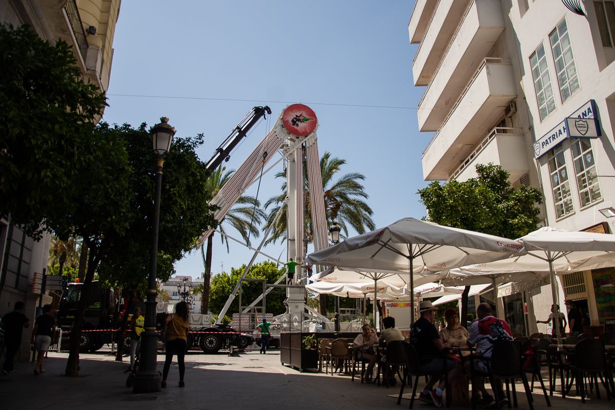 El Gobierno local de Jerez ha querido responder este mediodía a las críticas por la instalación de una noria panorámica en la plaza del Arenal con motivo de las Fiestas de la Vendimia 2021. A la controvertida instalación de la noria gigante, que denunciaron vecinos de la ciudad la pasada noche del martes, se le sumó un nuevo incidente este miércoles: la atracción se chocó con una de las palmeras de la céntrica plaza de la ciudad.