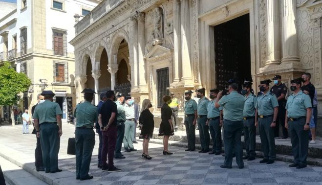 La directora, cuya llegada estaba prevista sobre las 17.30 horas, ha estado acompañada por la alcaldesa de Jerez, Mamen Sánchez, el subdelegado del Gobierno en Cádiz, José Pacheco, entre otros. En la entrada del edificio se encontraban varios miembros del Cuerpo de la Guardia Civil y algunos allegados.