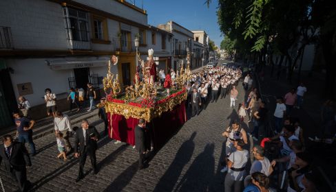 Discreta acogida en las calles de Jerez a san Dionisio. En la imagen, por la calle Ancha camino de la Merced.