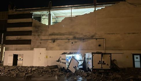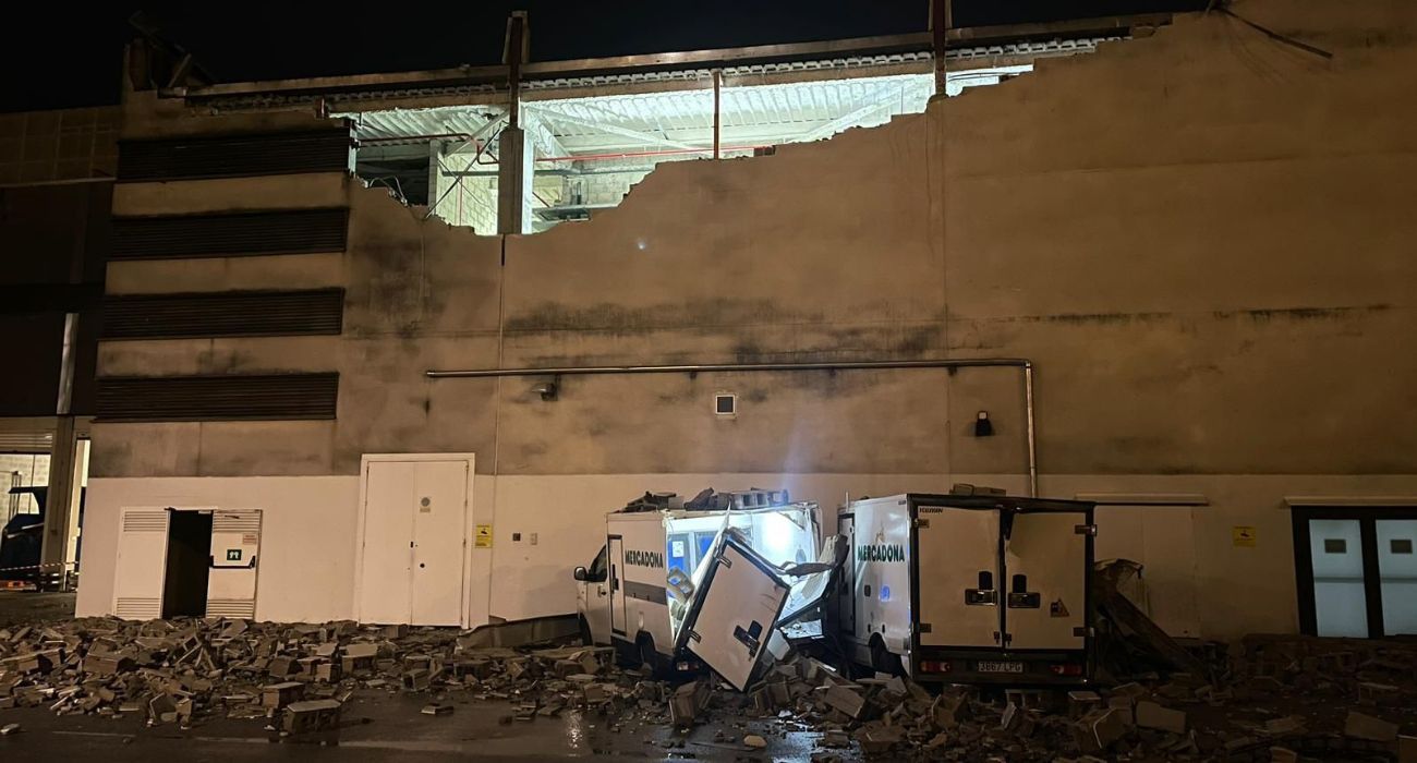 Dos camiones de Mercadona han quedado destrozados tras la caída de parte del muro de la nave de la tienda que la empresa valenciana tiene en las instalaciones del Área Sur.