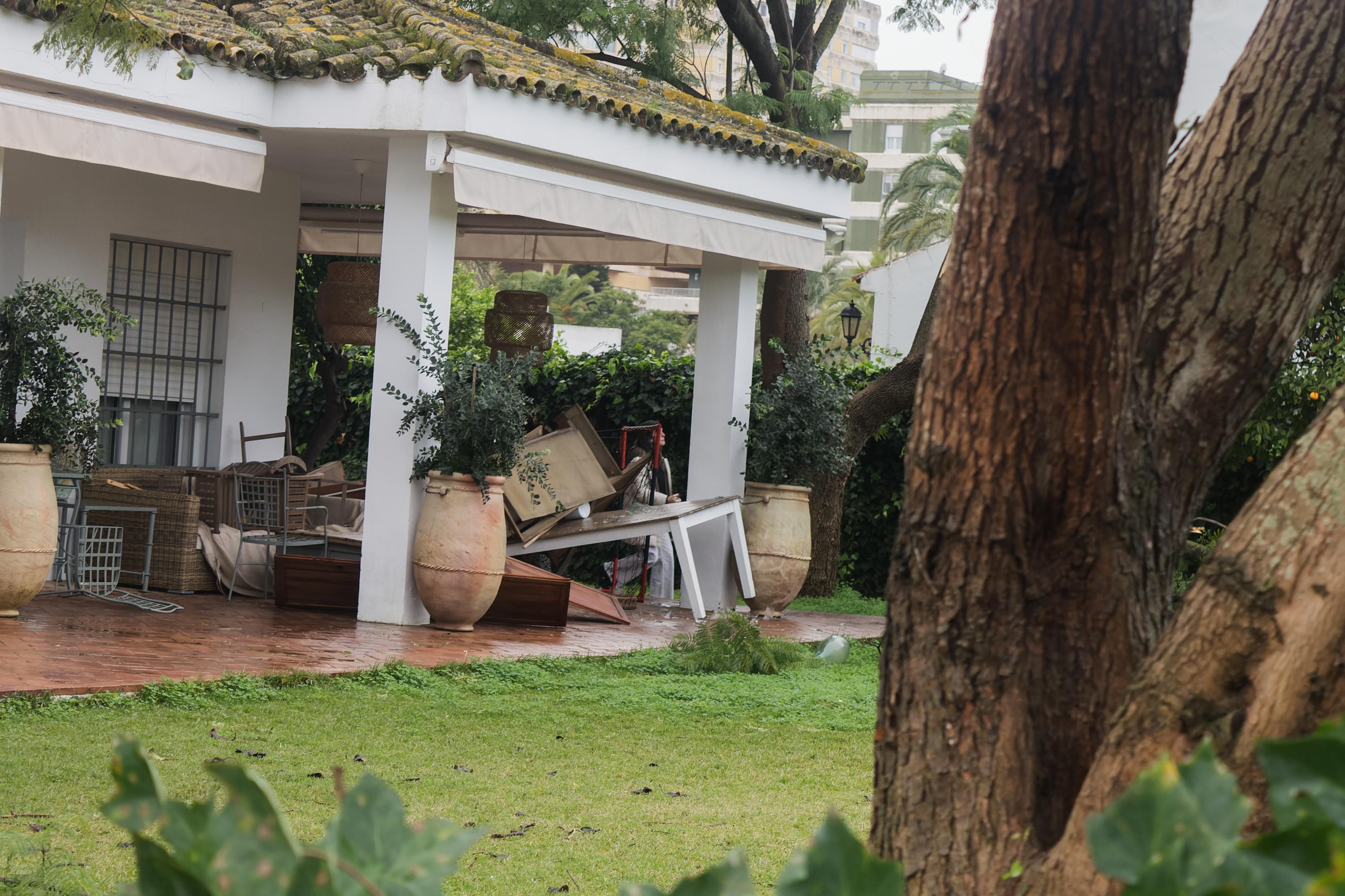 La parte superior del muro se ha venido abajo por los efectos del tornado que ha sacudido Jerez esta madrugada.