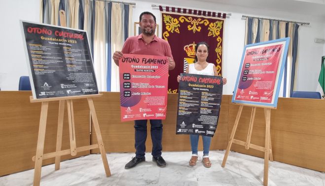 El alcalde de Guadalcacín, Salvador Ruiz García, acompañado de la vocal delegada de Cultura, Igualdad y Participación Ciudadana, Lidia Menacho García, ha presentado esta mañana la programación prevista en los ciclos Otoño Cultural y Otoño Flamenco de Guadalcacín que se extenderá entre el 16 de septiembre y el 18 de noviembre.