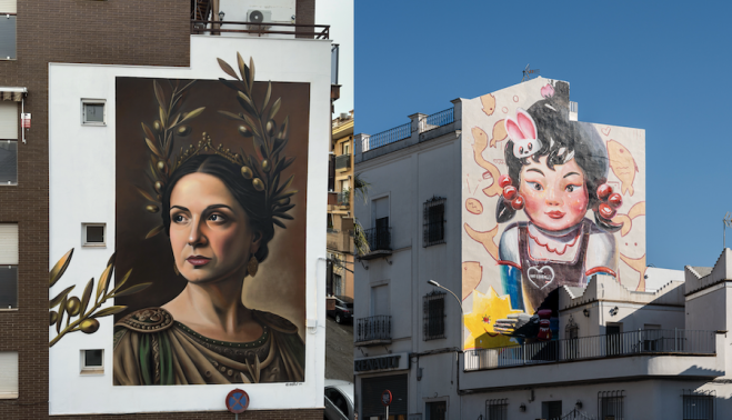 La obra de Ana Barriga, una artista de Cuartillos, pedanía de Jerez, se titula Ocaña, y se encuentra en el número 18 de la carretera de Lora de la localidad sevillana de Cantillana. "La imagen central —una figura infantil— simboliza al propio pueblo como un organismo joven, dinámico y en expansión. No es una infancia idealizada, sino una metáfora de una comunidad en crecimiento, que mira hacia el futuro sin renunciar a sus raíces", según se describe en la web de la plataforma.