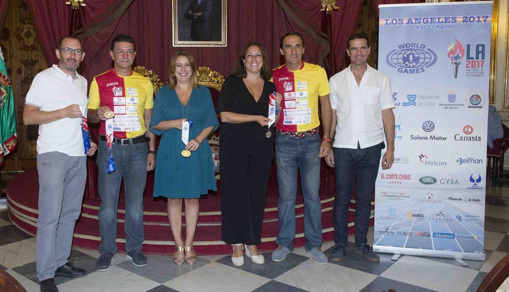 La responsable del área de Igualdad y Bienestar Social de Diputación Provincial de Cádiz, Isabel Armario, ha recibido este martes en el Palacio Provincial a Fran Medina y a Juan Manuel Márquez, deportistas de la asociación deportiva Sherrypol, de Jerez de la Frontera, que han obtenido cuatro medallas en las Olimpiadas para agentes de Policía y cuerpos de Bomberos celebradas en Los Ángeles. Según ha informado la Institución Provincial en una nota, Medina logró el oro en ciclo cross y la plata en mountain bike, mientras su compañero de expedición, Juan Manuel Márquez, conquistó la primera plaza en salto con pértiga y la plata en jabalina. El bagaje fue "especialmente valioso" ya que, además de las preseas, Medina alcanzó el cuarto puesto en cronoescalada y Márquez también fue cuarto en 100 metros vallas.