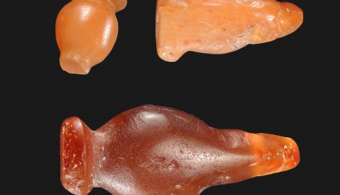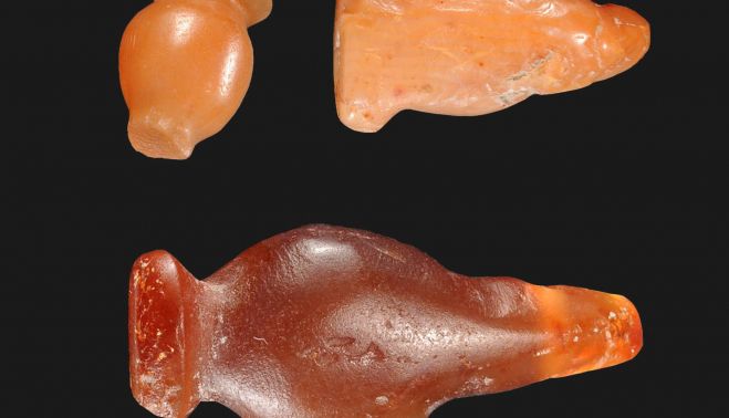 En los antiguos fondos del museo también existe un tercer ejemplar sin procedencia exacta, pero que podría tener el mismo origen. Respecto al origen de estas piezas, el profesor Torres destaca que “la materia prima con la que se han fabricado estos objetos, la cornalina, no existe en la Península Ibérica, pero sí es muy abundante en Egipto donde probablemente se fabricaron estos objetos o desde donde se exportó a las ciudades costeras fenicias donde fueron convertidos en las cuentas que los arqueólogos hemos recuperado en la actualidad”.