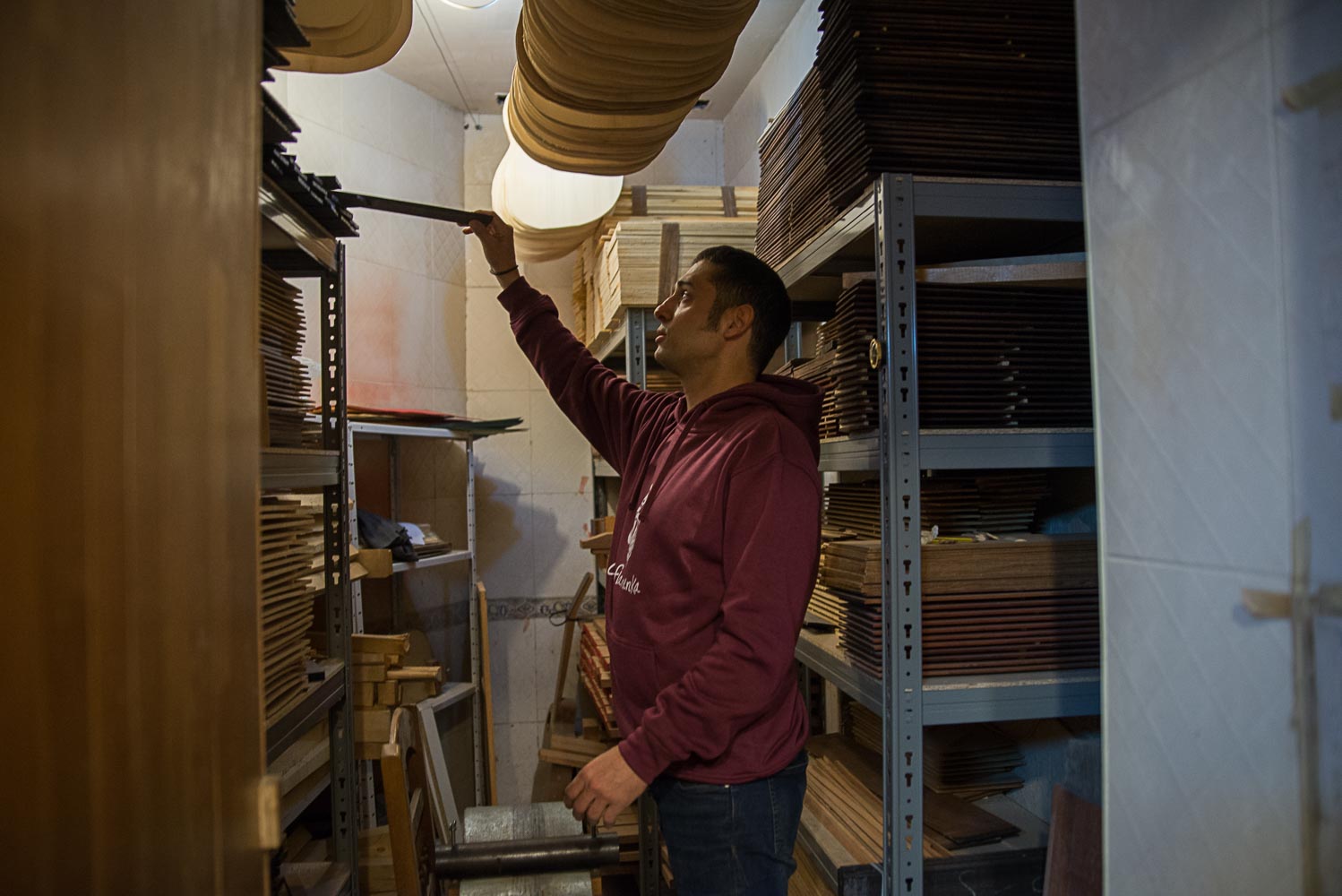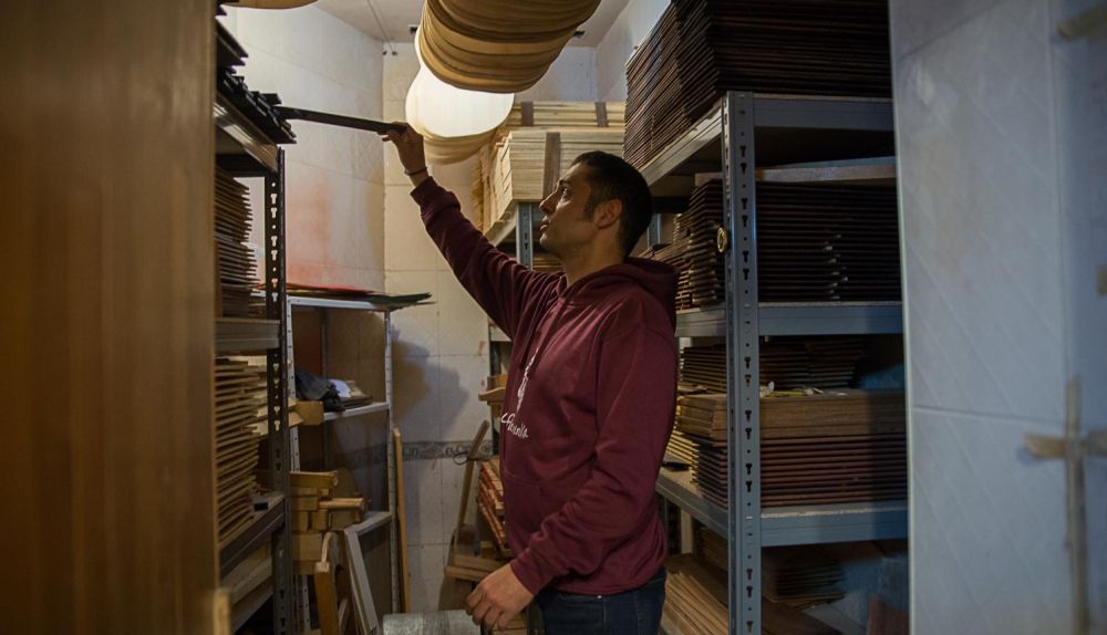 Su taller huele eminentemente a cedro. La pequeña dependencia está controlada las 24 horas del día para que la humedad se mantenga al 50 por ciento. Más de eso sería peligroso para la madera, que tiene que tener una antigüedad de 15 años para que se pueda trabajar con ella. David construye al mes dos guitarras. Cada una le lleva unas sesenta horas de trabajo. “Si construyera cuatro ya me quedaría a dormir en el taller”, bromea. Sus piezas, explica, están inspiradas en las que fabricaba el cordobés Manuel Reyes, artista de referencia para los grandes de la guitarra flamenca, aunque señala que “yo les doy mi toque personal”. Hoy, David puede presumir de haberse hecho un pequeño hueco entre tanto artista en una época en la que, además, ha aumentado considerablemente el número de lutieres, lo cual no significa que todos se dediquen en exclusiva a la fabricación, como sí es su caso.