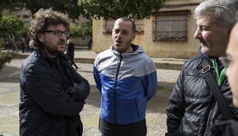 Junto a él, José Antonio, que pasea a su perro, extrabajador de la azucarera y con una invalidez por enfermedad, lamenta la delicada realidad que viven miles de personas en Jerez. “Con la película no vamos a solucionar el mundo, pero es nuestro granito de arena para darle visibilidad a este problema”, le explica Juan.