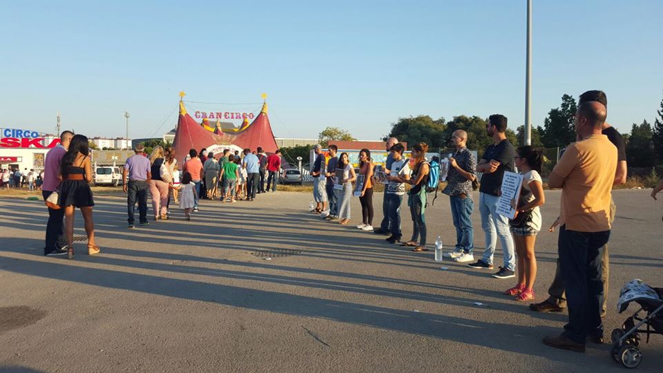 Activistas protestan en Jerez contra el gran circo Alaska, que ha estado instalado diez días en terreno público, por hacinar elefantes y tigres salvajes en remolques y emplearlos en su espectáculo. Reclaman que los animales dejen de ser un "reclamo comercial".