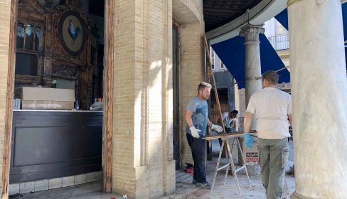 La actividad es frenética estos días en el emblemático Gallo Azul con vistas a reabrir sus puertas "en unos 20 días". Así lo confirman a pie de obra los operarios que se afanan por tener a punto el edificio para volver a convertirlo en un referente del negocio hostelero del centro de Jerez. "Estamos devolviendo esto a lo que era", exponen sin parar una faena que se centra en recuperar el estado original que tuvo el interior del edificio, tanto en sus muros como en sus barras. El proyecto parte del empresario malagueño Gonzalo Assiego, que desde 2015 cuenta también con una yeguada en el municipio y que está afincado en Bali, donde regenta uno de los considerados como mejores chiringuitos de playa del mundo.