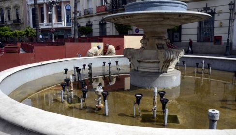 El teniente de alcaldesa de Sostenibilidad, Participación y Movilidad, José Antonio Díaz, ha avanzado que, tras la inauguración del nuevo sistema de fuente, alumbrado y zona ajardinada de la plaza del Arenal, acometido por Aqualia con un importe de 130.000 euros, el gobierno local, a través de Infraestructuras, ha programado la actuación de recuperación en distintas fuentes del centro de la ciudad en las próximas semanas. La prioridad en el entorno céntrico, según ha dicho, “la tenemos ahora en la fuente de la Rotonda de los Casinos". "Estamos barajando varios presupuestos porque hay que renovar por entero el sistema de válvulas y la inversión estará en torno a los 21.000 euros", ha concretado Díaz.