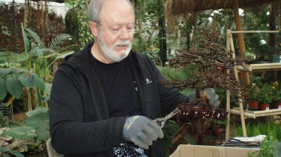 Bonsái significa "árbol que crece en bandeja". De origen chino, muchos creen que es japonés, ya que Japón le saca grandes beneficios económicos debido a la akadama, un sustrato vital para que estos árboles en miniatura perduren años. China y La India son los dos países creadores de estas maravillosa, así que todo se queda en el continente asiático. Pero la tradición de cuidar de estas plantas leñosas se va expandiendo poco a poco alrededor del mundo desde hace ya mucho tiempo. El jerezano Jerónimo Campoy Muñoz, gerente de Piscinas Jerez desde 2013, es uno de los mayores aficionados a esta artesanía. Nace en agosto del 53 y dice que el interés por las plantas le viene desde pequeño, ya que en la Barriada España, donde se cría, su madre cultiva un jardín que él trata con especial mimo. Este amante de los bonsáis conoce desde hace 20 años todo lo que debe saber sobre esta especie a través de internet y revistas especializadas. Pero no llega a dedicarse a ello hasta que en 1999 compra una casa con una terraza de 140 metros: “La he destinado prácticamente al bonsái”, indica.